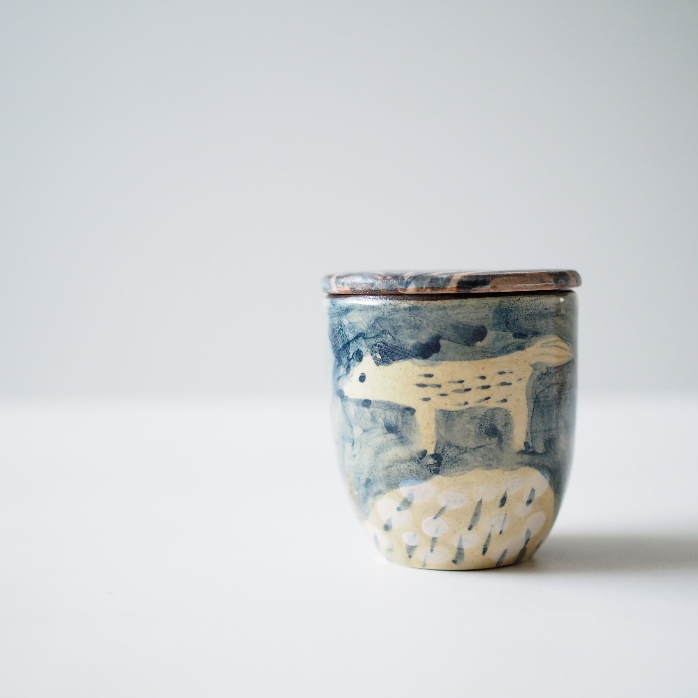 描かれている蓋付き湯呑みです。