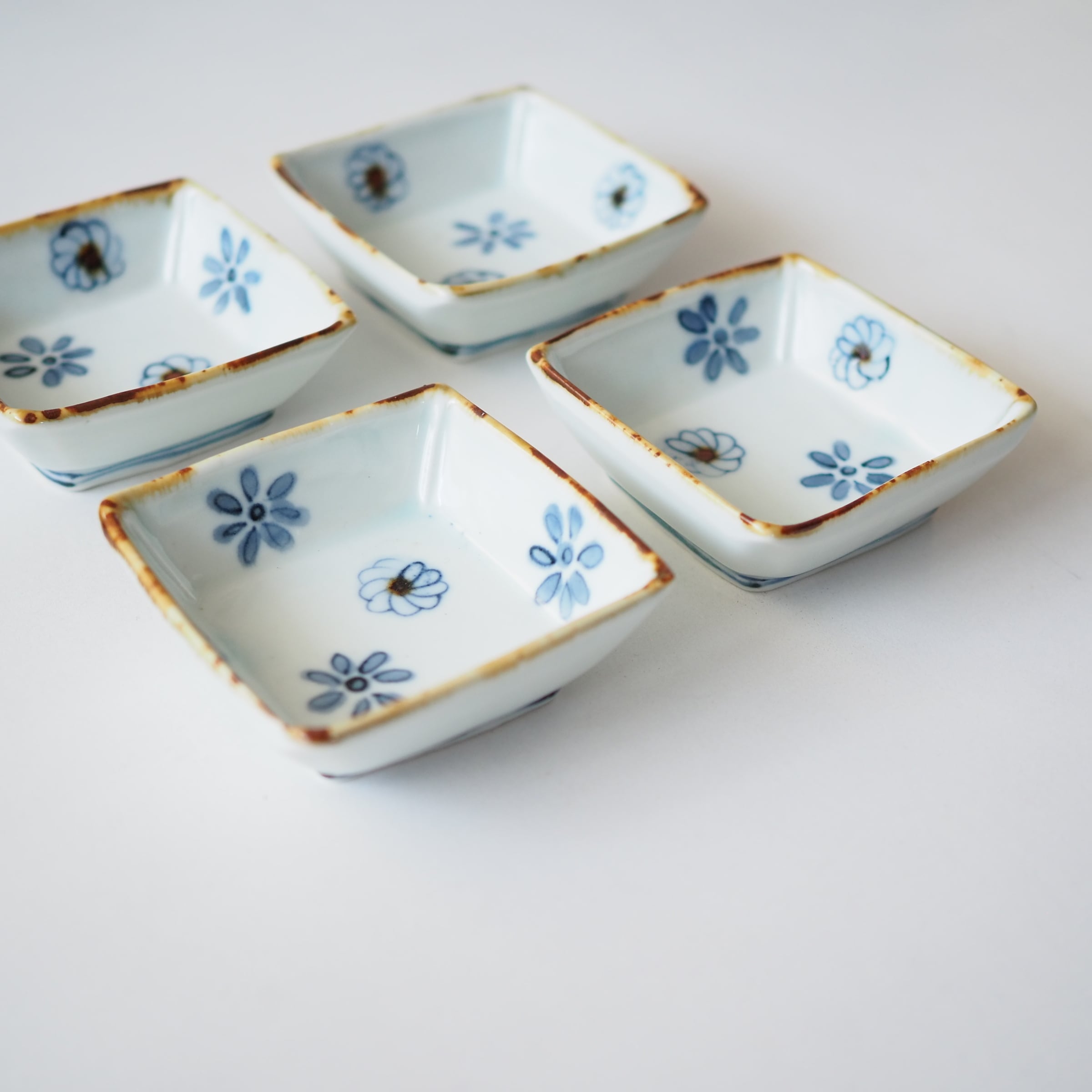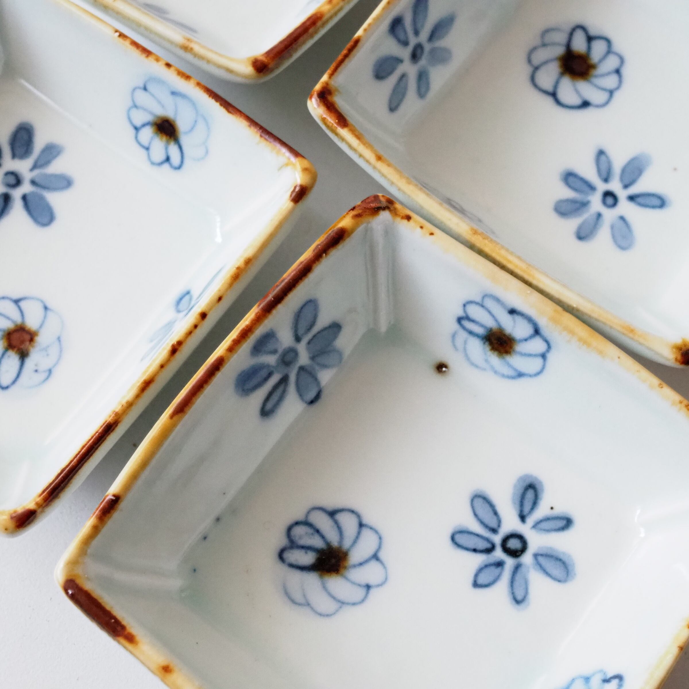 花文が愛らしい角小皿です。